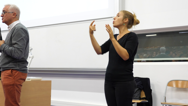 Interprétation adaptée aux personnes sourdes-aveugles.